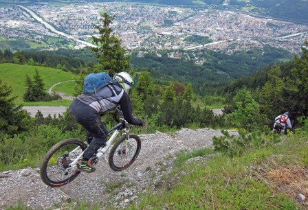 I Innsbruck finns ett downhillspår som alla cyklister i Österrike snackar om: Nordkette Single Trail. Denna fyra kilometer långa singletrack löper i fallinjen under gondolen på Nordkette och marknadsförs som ”Europas brantaste och svåraste downhillspår”. En sådan slogan inbjuder givetvis den äventyrslystne att sätta sin kapacitet som cyklist på prov: hur svår kan en stig vara egentligen?