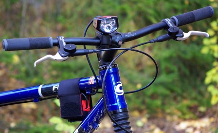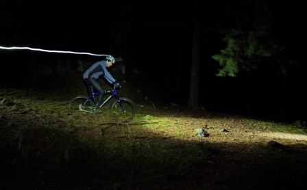 Med lampan på styret räcker både läge 1 och läge 2 till för att hålla bra fart i skogen. Till och med läge 3 fungerar hjälpligt om stigarna är kända eller om tempot är lite lägre. Men då gäller att inte läge 1 och 2 använts precis innan så att ögonen vant sig vid det starkare ljuset.