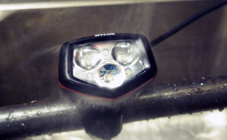 Något som inte fungerar vid styrmontage är lamphusets vinklingsbara monteringsklämma. Friktionen i klämman är inte tillräcklig för att hålla lampan på plats vid stökigt underlag utan den skakar lätt ner i sitt nedersta läge. Botemedlet är att vrida vinkeln till sitt nedersta läge och sedan justera höjden med styrfästet.
