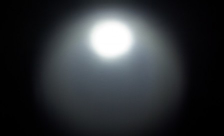 Frontglaset ger en jämn ljusbild utan avbrott, mörka partier eller optiska defekter. I periferin förekommer dock en del oregelbundet ströljus men är inget som stör.