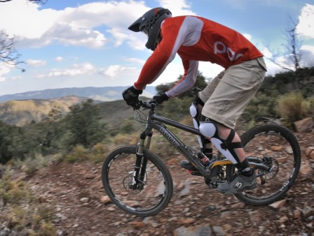 Även vid utförsåkning beter sig gaffeln lite märkligt. I början av slaget är den okänslig och rör sig motvilligt för att sedan använda onödigt mycket slaglängd under till exempel inbromsning. Enda justeringsmöjligheten för att motverka denna dyktendens är att öka lufttrycket vilket tyvärr gör gaffeln ännu mer okänslig. Återigen hade det varit bra att kunna justera lågfartskompressionen. DFR-enheten arbetar dåligt vid snabba stötar, den hänger helt enkelt inte med och det känns i styret. Då gaffeln är enormt viktig vid utförscykling så sänker den helhetsintrycket rejält.