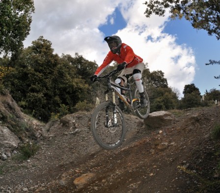 Vi har filmat bakfjädringens arbete med respektive utan bakbroms på nedför samma stigparti. Även gung i länkaget vid både sittande och stående trampande har dokumenterats. Därpå följer lite bonusmaterial i form av utförsåkning i Spanien med delar av testlaget.