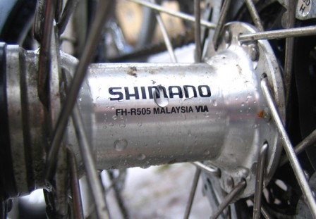 Naven som erbjuds till en skivbromsad LX-grupp är Shimanos landsvägsnav med centerlock-fäste, HB/FH-R505. Centerlock är shimanos modell för infästning av bromsskivan i navet. Det är en infästning med splines och en centrummutter. En ganska praktisk lösning om det inte vore för att det nästan bara är Shimano som tillämpar den. Övriga tillverkare håller sig i regel till den befintliga standarden IS2000. Efter en snabb koll på sprängskissens reservdelslista spekulerar jag i att naven mer eller mindre är Deore-nav fast med annan ytbehandling och logga. I regel funkar de bra om man bara ser till att ge dem lite kärlek mellan varven.