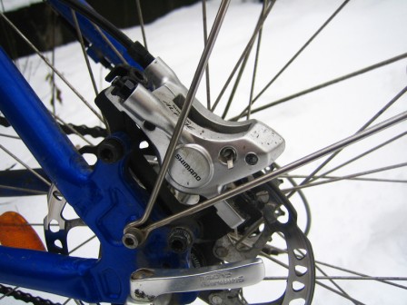 Bromsarna fungerar felfritt men jag blir galen på bromshandtagen. Jag förstår inte varför det existerar fyrfingerhandtag. Jag antar att jag är för mountainbikeskadad för att förstå målgruppen, men om det är så att målgruppen efterfrågar fyrfingerhandtag så har de fel. Lösningen är inte att ge dem vad de efterfrågar utan att ta fram en instruktionsfilm där de får lära sig vad som är rätt. Modulationen med fyra fingrar är kass jämfört med låta ett finger känna hur bromsen jobbar. Med skidvantar blir det inte fullt så galet, men det är mest för att skidvantar och fyrfingerbromsar förmodligen tillhör samma grupp av diagnoser.